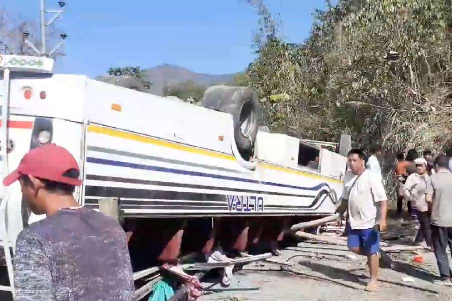 মণিপুরের নোনে জেলায় ভয়াবহ বাস দুর্ঘটনা। বুধবার সকালের ওই দুর্ঘটনায় খাদে পড়ে গেল স্কুল বাস। অন্তত ১৫ জন স্কুল পড়ুয়া-সহ বেশ কয়েক জনের মৃত্যু হয়েছে বলে সংবাদসংস্থা সূত্রে জানা গিয়েছে। প্রশাসন সূত্রের খবর, দুর্ঘটনায় আহত হয়েছেন বহু পড়ুয়া। তাদের কয়েক জনের অবস্থা গুরুতর। ফলে মৃতের সংখ্যা আরও বাড়তে পারে বলে আশঙ্কা। প্রাথমিক ভাবে মনে করা হচ্ছে পাহাড়ি রাস্তায় চালক নিয়ন্ত্রণ হারানোর কারণেই দুর্ঘটনা ঘটে। স্থানীয় সূত্রের খবর, থৌবাল জেলার ইয়ারিপকের ‘থাম্বলনু হায়ার সেকেন্ডারি স্কুলের’ পডুয়াদের নিয়ে দু’টি বাস শিক্ষামূলক ভ্রমণে খৌপুমের দিকে যাচ্ছিল। সে সময়ই বিষ্ণুপুর-খৌপম সড়কে লোংসাই তুবং এলাকায় দুর্ঘটনাটি ঘটে। ঢালু খাদে গড়িয়ে বাসটি উল্টে যায়। খবর পেয়ে পুলিশ ও স্থানীয়েরা দুর্ঘটনাস্থলে পৌঁছে উদ্ধারের কাজ শুরু করেন।