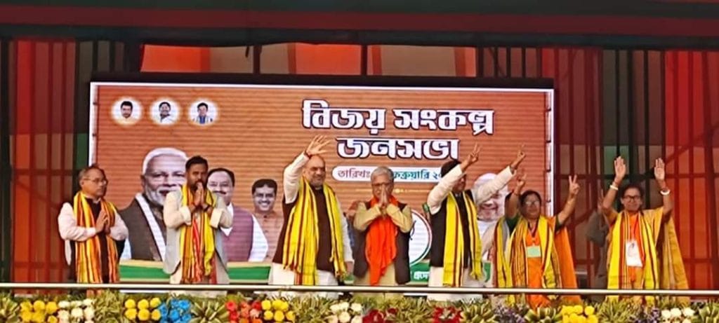 চড়িলামঃ কমলাসাগর কালীমায়ের চরণে প্রনাম জানিয়ে বিজেপি সিপাহীজলা উত্তর জেলার উদ্যোগে বিশ্রামগঞ্জ মিনি স্টেডিয়ামে আয়োজিত জনসভায় প্রার্থীদের সমর্থনে ভোট চাইলেন দেশের স্বরাষ্ট্রমন্ত্রী অমিত শাহ। এদিন পূর্বতন বাম সরকারে আমলে রোজভ্যালী ঘোটালা, ১১৫ কোটি টাকার রেগার ঘোটালা, বিশালগড় ব্লকের ১৭ কোটি টাকার ঘোটালা, রূপাইছড়ি ব্লকের ঘোটালা এবং রাজ্যের সবচেয়ে বড় হেলথ স্কিম ঘোটালার প্রসঙ্গ টেনে বর্তমান সরকার অনেকটাই স্বচ্ছ বলে উল্লেখ করেন অমিত শাহ। রাজ্যের বিজেপি সরকার জনগনকে ঘোটালার পরিবর্তে দিয়েছে পানীয় জল, গ্যাস, ঘর, ফ্রি রেশন, কৃষক সম্মান নিধির মতো বিভিন্ন কেন্দ্রীয় প্রকল্পের সুবিধা। কর্মচারীদের দিয়েছে সপ্তম বেতন কমিশন, ১৩ লক্ষ আয়ুষ্মান ভারত যোজনার স্বাস্থ বিমার সুবিধা। ফলে আগামী দিনে রাজ্যবাসীর কল্যানে সরকার বেশ কিছু নতুন প্রকল্প আনার চিন্তা ভাবনা করেছে। এর মধ্যে কলেজ পড়ুয়া মেধাবী ছাত্রীদের স্কুটি প্রদান, কৃষকদের কৃষক সম্মান নিধি ২০০০ টাকা বাড়িয়ে ৮০০০ টাকা করা, গৃহহীনদের ২০২৫ সালের মধ্যে ১০০ শতাংশ আবাস যোজনার আওতায় আনা, আগরবাতি মিশন, ব্যাম্বু মিশন এবং সবচাইতে গুরুত্বপূর্ন যে বিষয়টি তা হল চা শ্রমিকদের দুই গন্ডা ভূমির বন্দোবস্ত করবে বলে প্রত্যয় ব্যক্ত করেন তিনি। গত ১৫ নভেম্বর বিশ্ব জনজাতি দিবস পালন করে ২০০ কোটি টাকা ব্যয়ে জনজাতি সংগ্রহ শালা নির্মানের যেই কাজ চলছে তাতে জনজাতিদের উপযুক্ত সম্মান দেওয়ার বিষয়টিও প্রাধান্য দেওয়া হচ্ছে বলে জানান। ফলে আগামী বিধানসভা নির্বাচনে ভোটারদের একটি ভোট দলীয় প্রার্থীদের জেতানো কিংবা মুখ্যমন্ত্রী বা উপমুখ্যমন্ত্রী নির্বাচন করা নয় ভোটটা হবে ত্রিপুরাকে সমৃদ্ধ করার পক্ষে। ফলে বিজেপিকে ভোট দেওয়া মানে ত্রিপুরাকে সমৃদ্ধ করা। নরেন্দ্র মোদী এবং মানিক সাহার নেতৃত্বে রাজ্য উন্নয়নের নিরিখে আরও এগিয়ে যাবে। তাই আগামী পাঁচ বছর দুজনের জোড়িকে আরও একবার সুযোগ দেওয়া উচিত বলে জানান কেন্দ্রীয় স্বরাষ্ট্রমন্ত্রী অমিত শাহ। আজকের এই জনসভায় ব্যপক জনসমাগম দেখে সিপিএম তথা বিরোধী জোট এক প্রকার পরাজয় স্বীকার করে নেবেন বলেও তিনি জানান। তাছাড়া এই মাঠেই বিরোধী দলনেতা মানিক সরকারকে ভোট চাওয়ার আগে তার আমলে ঘটে যাওয়া একের পর এক ঘোটালার হিসাব জনগনের সামনে তুলে ধরারও চ্যালেঞ্জ ছুড়ে দেন কেন্দ্রীয় স্বরাষ্ট্রমন্ত্রী। পরে সিপাহীজলা উত্তরের অধিন পাঁচটি বিধানসভা কেন্দ্রের বিজেপি দলের পদ প্রার্থীদের বিপুল ভোটে জয়ী করে জনগনের প্রতিনিধিত্ব করতে পবিত্র বিধানসভায় পাঠানোর আহ্বান জানান। এদিনের এই বিজয় সংকল্প রেলীতে কেন্দ্রীয় স্বরাষ্ট্রমন্ত্রী এবং মুখ্যমন্ত্রী ছাড়াও উপস্থিত ছিলেন