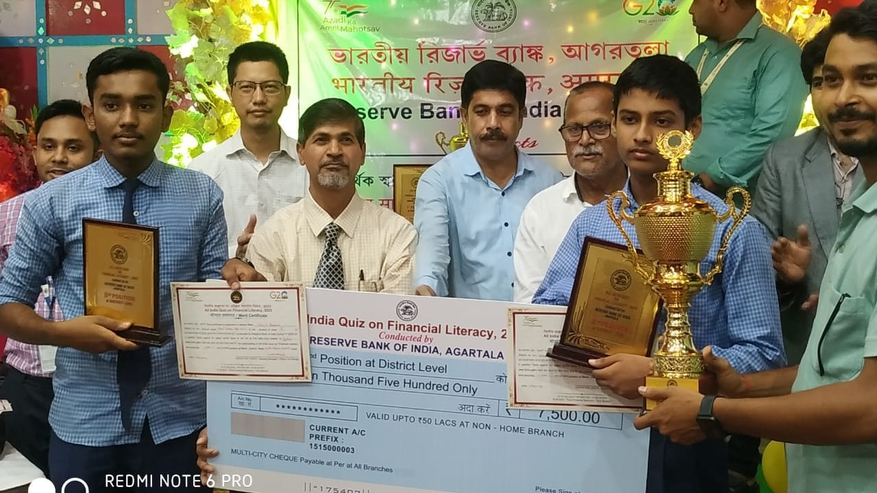 বিলোনিয়া: বিলোনিয়া সানাই গেস্ট হাউসে বুধবার ভারত সরকারের লিড ব্যাংক রিজার্ভ ব্যাংকের উদ্যোগে দক্ষিণ জেলার বিভিন্ন বিদ্যালয়ের বাছাই করা ছাত্র ছাত্রীদের নিয়ে আয়োজন করে আর্থিক সাক্ষরতা বিষয়ক প্রতিযোগিতামূলক কুইজ, যেখানে অংশগ্রহন করে জেলার ৬ টি স্কুলের দুজন কোরে ছাত্র ছাত্রী। সাথে ছিলেন বিদ্যালয়ের শিক্ষক শিক্ষিকারা। মোট পাঁচটি রাউন্ডে এই প্রতিযোগিতামূলক কুইজটি করা হয়। যে স্কুল গুলু এই প্রতিযোগিতায় অংশগ্রহণ করে সেই স্কুলগুলো হলো বিলনিয়া সরকারি ইংরেজি দ্বাদশ শ্রেণী বিদ্যালয়, মনাই পাথর দ্বাদশ বিদ্যালয়, কৃষ্ণ নগর দ্বাদশ বিদ্যালয়, চাতক ছড়ি দ্বাদশ বিদ্যালয়, মনু দ্বাদশ বিদ্যালয়, জোলাইবাড়ি দ্বাদশ বিদ্যালয়। বিভিন্ন বিষয়ের ওপর কুইজের প্রশ্ন করা হয়, বিশেষ কোরে ব্যাঙ্কিং সিস্টেমে সাধারণ মানুষের অভিজ্ঞতা কম রয়েছে, তাই স্কুল কলেজের ছাত্র ছাত্রীদের মধ্যে যদি সেই অভিজ্ঞতার সঞ্চার করা যায় তাহলে আগামীদিনে এই ছাত্র ছাত্রীরা তাঁদের অভিজ্ঞতা গুলু মানুষ কে সচেতন করার বিষয়ে কাজে লাগাতে পারবে, সাধারণ মানুষ জানতে পারবে ব্যাংকে কিভাবে দৈনন্দিন কাজ কর্ম কিভাবে করতে হয়। ছয়টি স্কুলের মধ্যে কুইজ প্রতিযোগিতায় প্রথম স্থান অধিকার করে বিলোনিয়া সরকারি ইংরেজি মাধ্যম বিদ্যালয়, দ্বিতীয় স্থান লাভ করেছে মনাইপাথর দ্বাদশ বিদ্যালয়, তৃতীয় স্থান লাভ করেছে কৃষ্ণ নগর দ্বাদশ বিদ্যালয়।